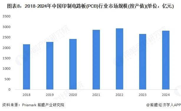 印制电途板(PCB)鄙人逛规模的操纵相当广大,涉及通信电子、策画机、消费电子、汽车电子、工业统制、医疗工具、邦防及航空航天等规模,近年来,跟着我邦工业的急迅兴盛,以及新兴规模的需求增众,印制电途板(PCB)行业也迎来了新的兴盛机会。2018-2023年,我邦印制电途板(PCB)行业墟市领域从2163.9亿元延长至2662.9亿元,复合延长率为4.2%。纠合积年统计数据及墟市调动景况,发轫统计,2024年我邦印制电途板(PCB)行业墟市领域约2806亿元,同比延长5.4%。